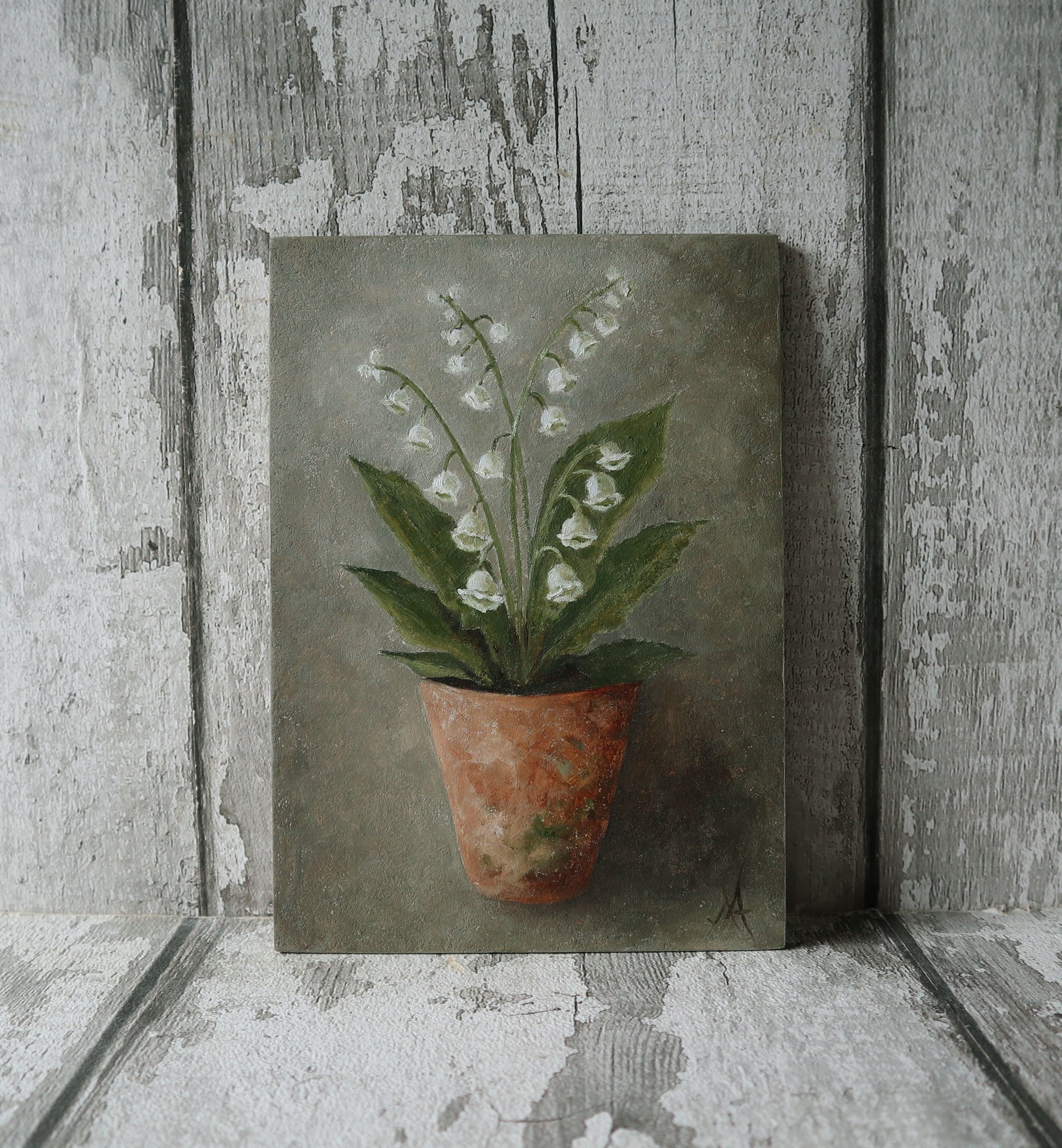 Original Oil Painting on Board From the Potted Floral Collection - Lily of The Valley