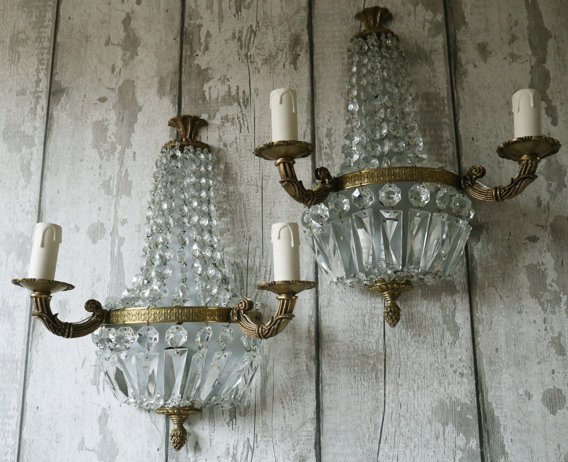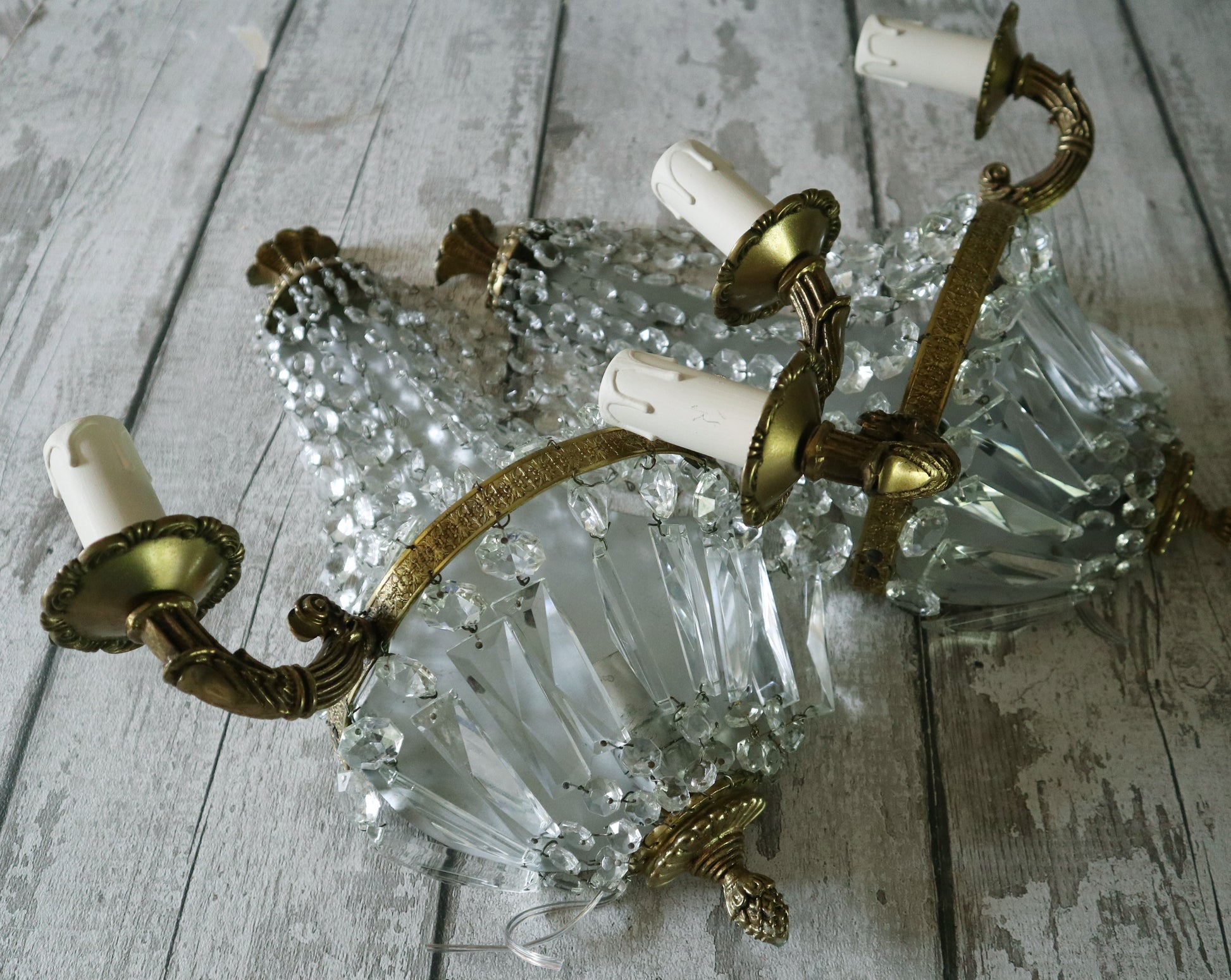 Pair French Demi Lune Vintage Wall Lights Chandeliers - Rewired